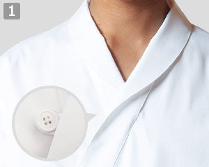 Há um botão na parte interna da gola para evitar que a roupa saia durante o cozimento.