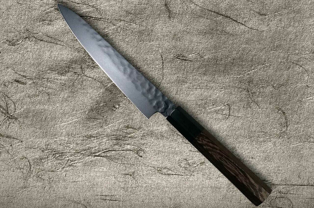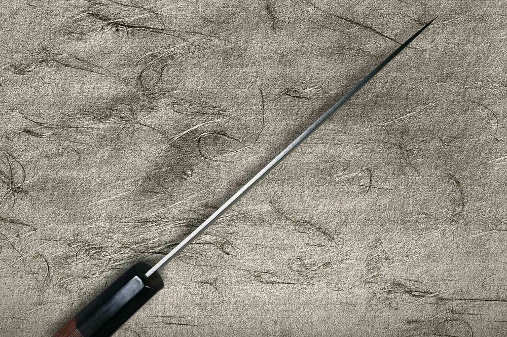 As alças dessas facas são de madeira wengué octogonal meio arredondada com virola de chifre de búfalo para uso profissional superior. Cada faca é afiada à mão para garantir a máxima nitidez fora da caixa.
