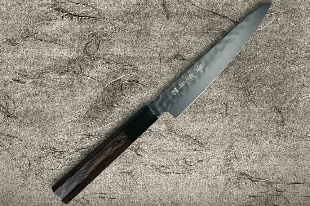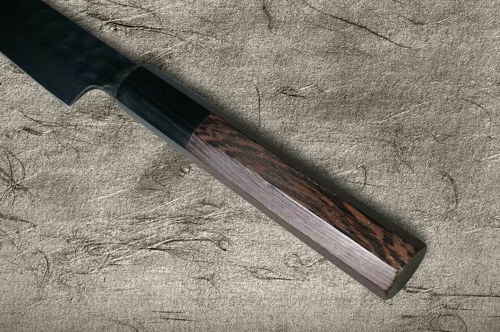 As facas Sakai Takayuki Non-Stick Coating VG10 "KUROKAGE" são revestidas com resina de flúor na lâmina do núcleo VG10 para evitar aderência e obter extrema suavidade da superfície.