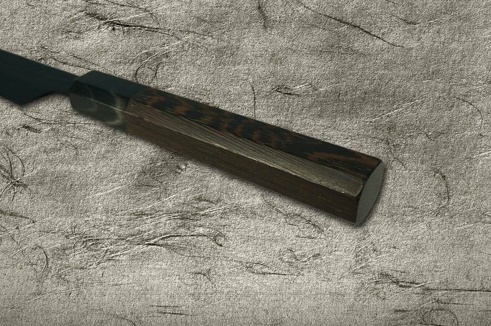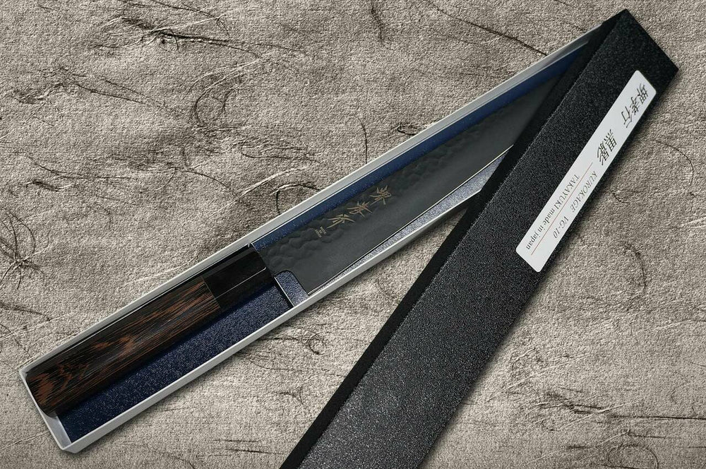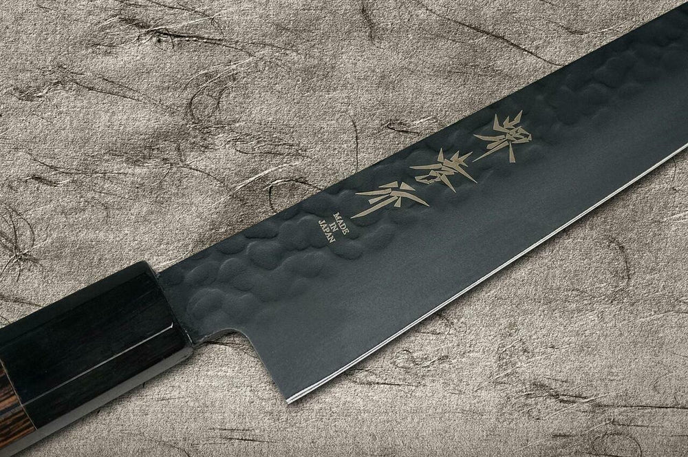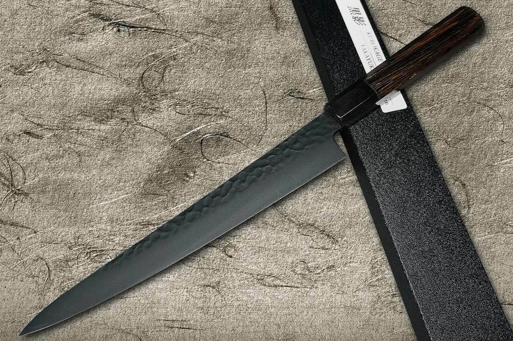 As facas Sakai Takayuki Non-Stick Coating VG10 "KUROKAGE" são revestidas com resina de flúor na lâmina do núcleo VG10 para evitar aderência e obter extrema suavidade da superfície.