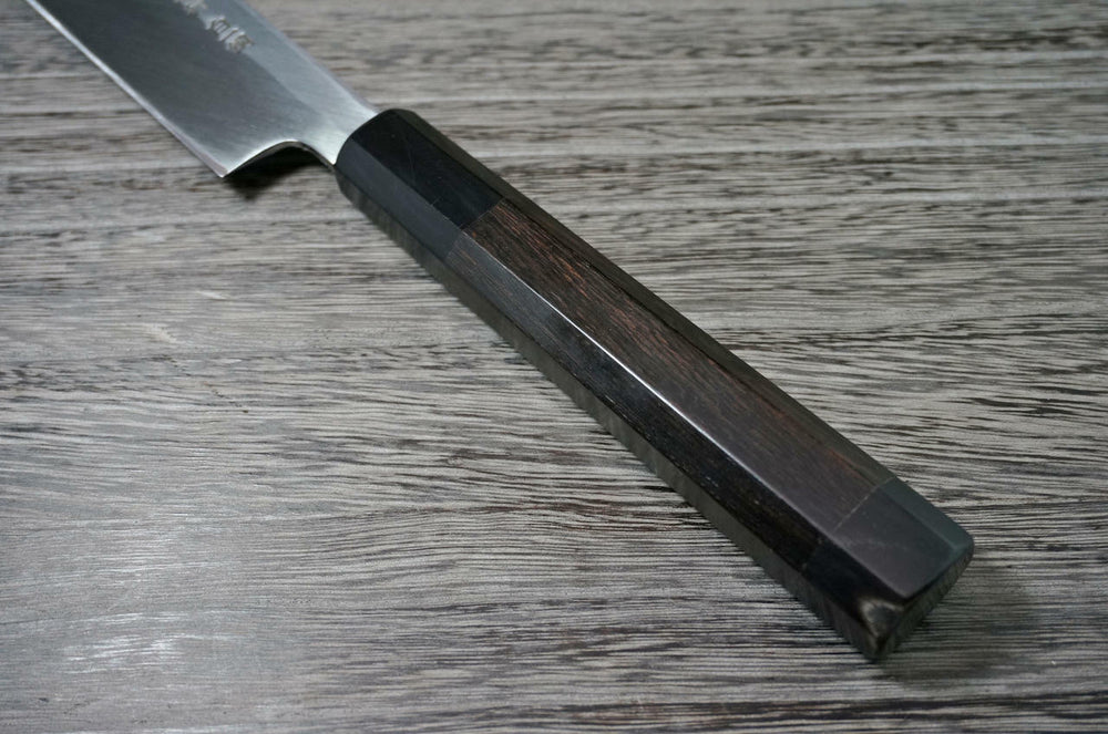 O cabo de madeira de ébano, e sua figura octogonal de estilo japonês se ajusta melhor à sua mão.