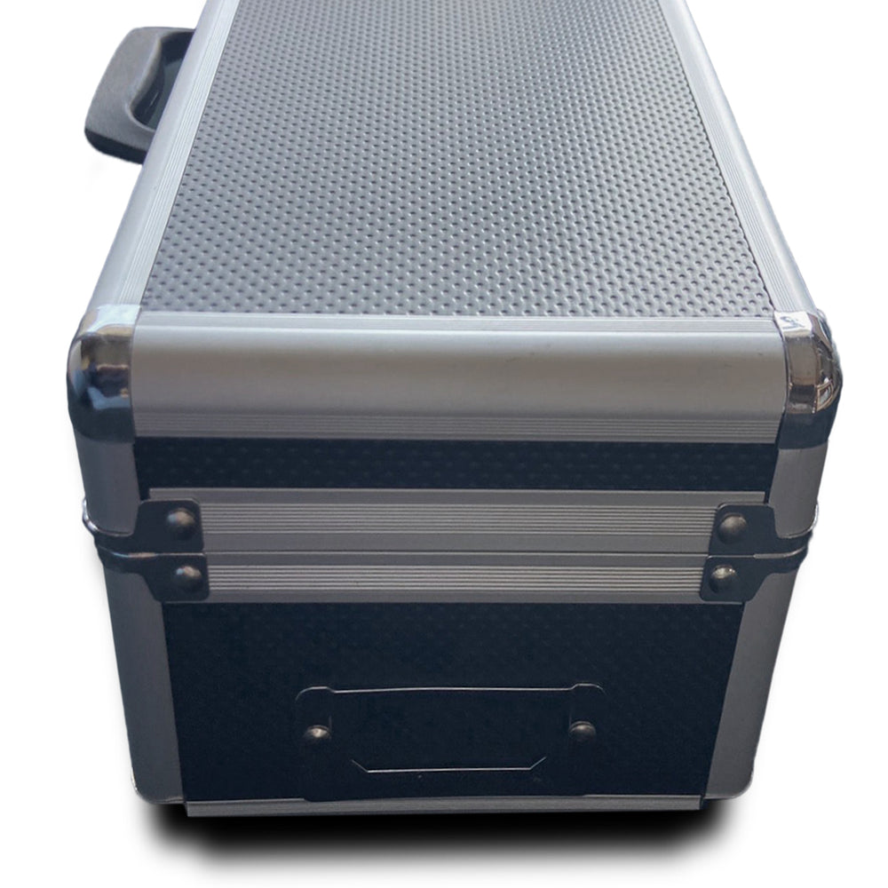 Este maletín fabricado en polipiel y acabado en aluminio, dispone de 2 llaves, asa y dispone de 5 divisores extraíbles y 5 espumas protectoras más.